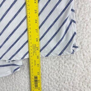 Chico's White Blue Striped Pullover Shirt Womens Stretch Short Sleeve Size Large