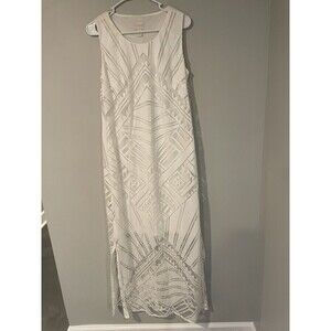Chico's White Burnout Maxi Dress Sheer Side Slit Geometric Renee Size 8 Small