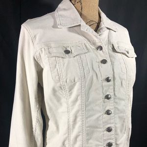 Chicos White Corduroy Button Front Jacket Size 1/Medium