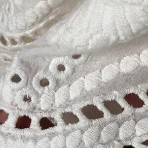 Beautiful and versatile, this Chico’s 100% cotton eyelet tunic blends timeless elegance with relaxed, resort-ready style. Featuring intricate eyelet embroidery, side lace-up detailing, and a breezy silhouette, this piece is perfect for layering over denim, pairing with linen trousers, or styling as a vacation-ready top.