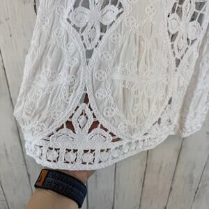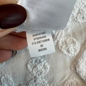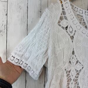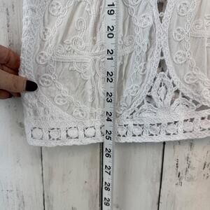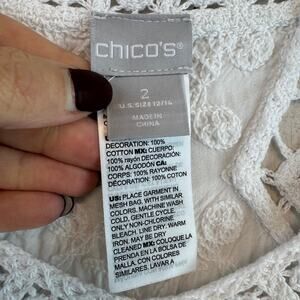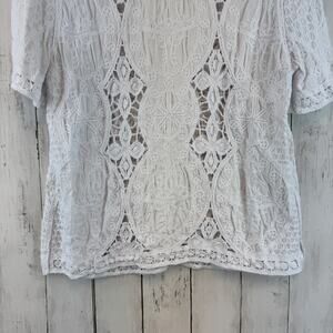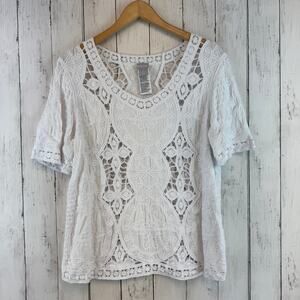 Chico's White Cutwork Top Scoop Neck Short Sleeve Knit Blouse Size 2 14/16