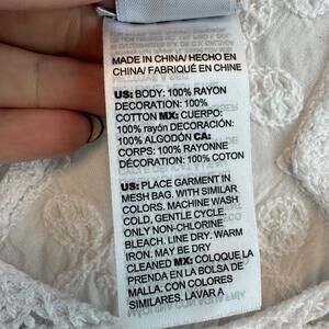 Details: 100% rayon, scoop neck, short sleeves, geometric cut work design, unlined, pullover style, machine wash.