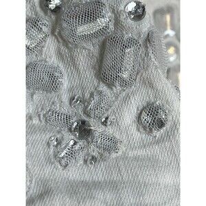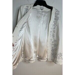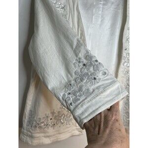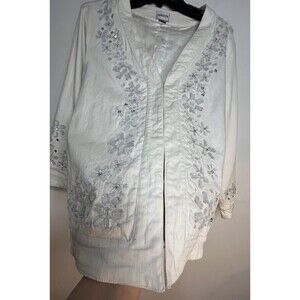 Chicos White Denim Embellished Jacket Rhinestone Y2K sz 2 / L (15)