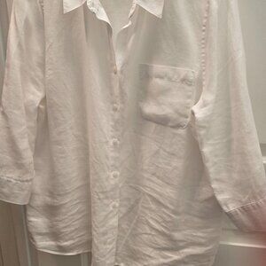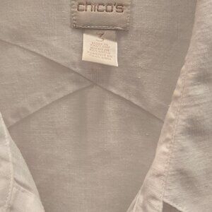 Chico's White Linen Button Down Shirt No Iron Smoke Free Pet Free Home