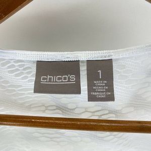 Chico's White Open Knit Long Sleeve Blouse Top Womens Size 1