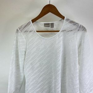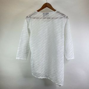 Chico's White Open Knit Asymmetrical Long Sleeve B