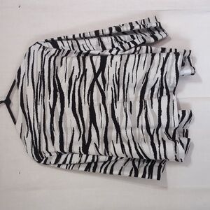 Chicos White Silver Black Zebra Open Front Blazer Size 3 - XL