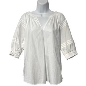 Chico’s White V-Neck Short Sleeve Cotton Poplin Top Peasant Style Size 2 US 8