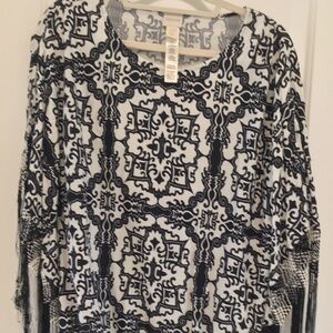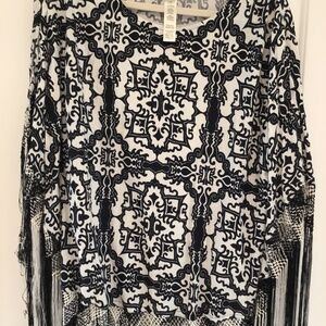Chico's White and Black Poncho with Fringe. Arabic design. Barely worn and no flaws or stains. Very unique item in excellent condition!