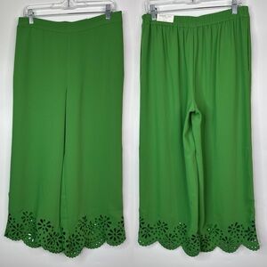 Chicos Wide Culotte Eyelet Cutout Crop Wide Leg Green Pants Size 1(8 US) NWT