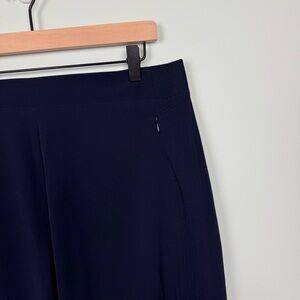 Chico's Wide Leg Pull On Cropped Pants Navy Blue Lightweight Zip Pockets
