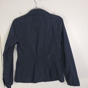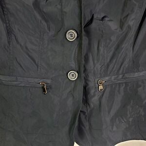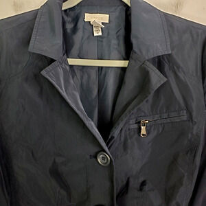 Chicos Windbreaker Jacket Womens S 0 Navy Military Utility Zip Pockets Slicky