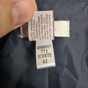 Elevate your wardrobe with this Chico's windbreaker jacket, perfect for any casual or workwear occasion. The jacket is made of polyester with a solid pattern and long sleeves that feature a button closure. It comes in a beautiful navy blue color and is designed with a regular fit for women in size small. The jacket is machine washable and has a polyester lining material with accents of buttons. It also has pockets for convenience and can be worn in any season. This classic jacket is perfect for those who want a timeless piece in their wardrobe.