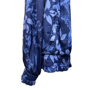 Chicos Wmns Reversible Floral Print Silky Bomber Jacket Full Zip Measures Large