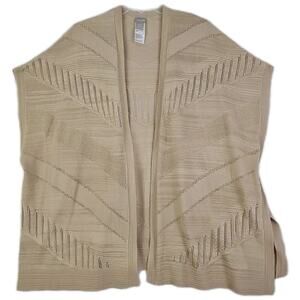 Chico's ~Woman S/M~ Beige/Tan Knit Short Sleeve Kimono Open Front Cotton Blend.