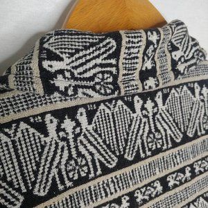 Chicos Woman Size 1 US 8 Woven Bird Jacket Blazer Black White Button Up Tribal