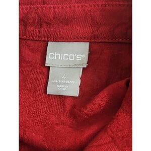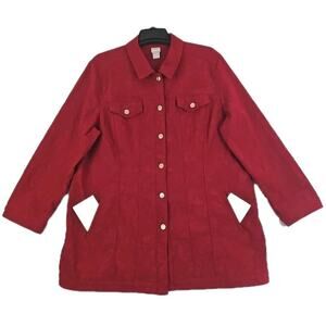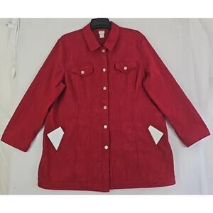 Chico's ~Woman Size 4(20/22)~ Red Button-Up Trucker Jacket Unlined Long Sleeve.