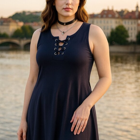 Chico's Woman's Dress Sleeveless Navy Blue Lace up neck Size: 1