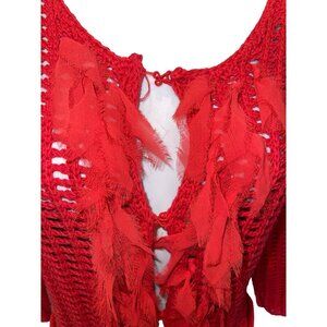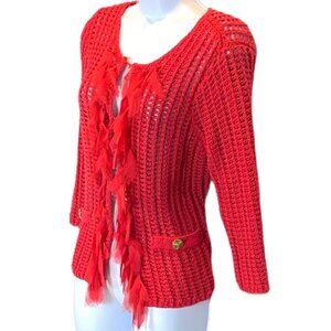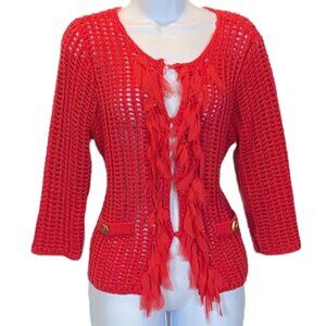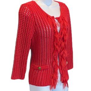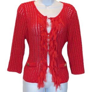 Chico's Woman's Fringe 3/4 Slv Knitted Bright Orange Cardigan Sweater Small S #1