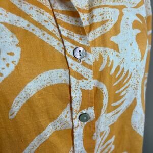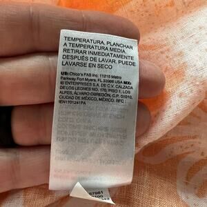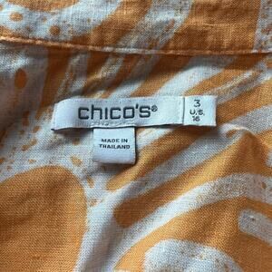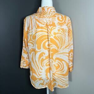 Chico’s Woman’s Orange White Linen Scroll Button Down 3/4 Sleeve Shirt- Size 3