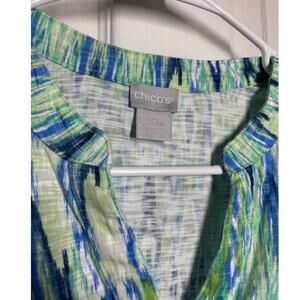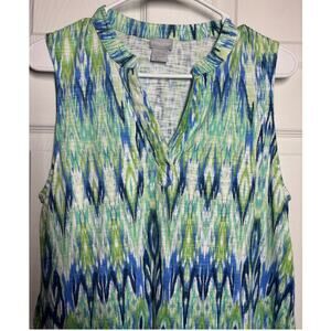 Chicos Women 1 Blue Green Tank V Neck Hi Low Top Casual Summer Spring