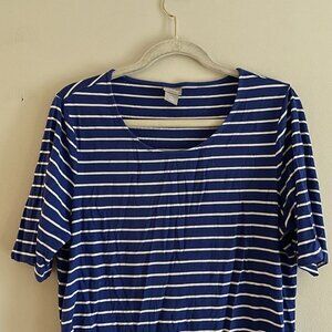 Chicos Women 2 US L Blue White Striped Short Sleeve Scoop Neck Side-Ruched Tee