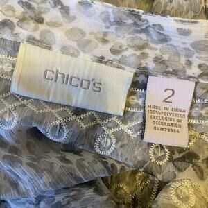 Chico’s Women 2/L Tunic Top Chiffon Embroidery Sequins Boho Beach Resort