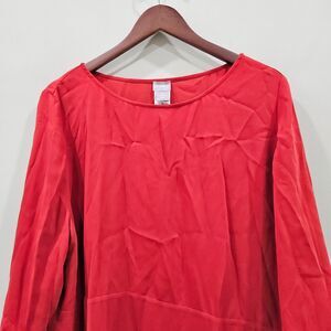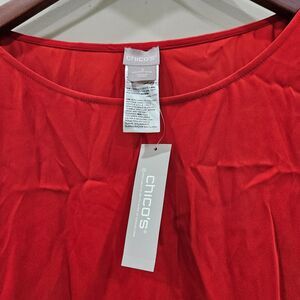 Chicos Women Asymmetric Hem Chiffon Top Plus Size 3 Red Flowy Lagenlook Oversize