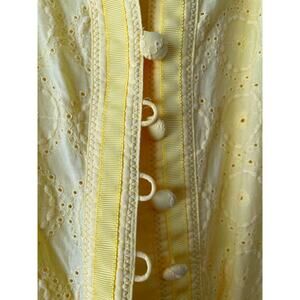 Chico's Women Butter Yellow Eyelet Button Front 3/4 Sleeves Size 2 Tunic Top