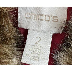 Chico's Women Coat Large Faux Fur Removable Collar Red Lined Long Sleeve Button Up