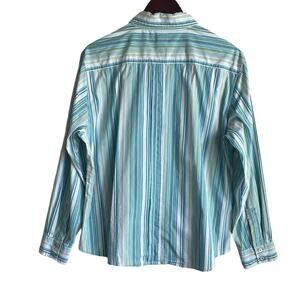 Chico's Women Cotton Top XL Green Blue Striped Button Up Basics Workwear Preppy