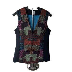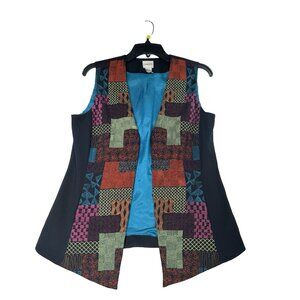 Chico's Women Embroidered Patchwork Vest Art To Wear Pockets Multicolor Size M