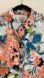 Vibrant floral button down shirt by Chico's. Features a mix of pink, blue, green, and black floral patterns. Perfect for a stylish look.