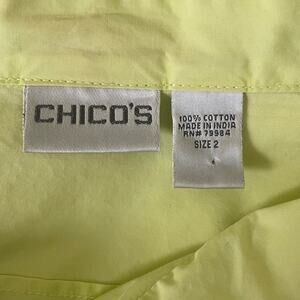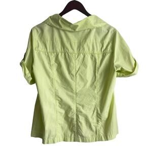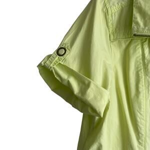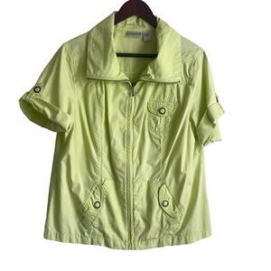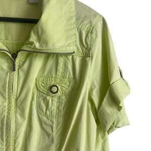 Chico's Women Jacket Top Collar Neck Short Cuff Sleeve Pockets Front Zip L Green