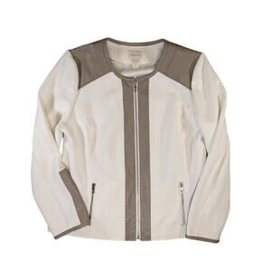 Chico’s Women L Ivory Brown Quilted Moto Jacket Faux Leather Zip Flawed