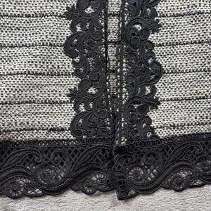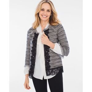 Chico's Women Lace Tweed Black Gray Cardigan Jacket Preppy Business Sz 3 XL C118