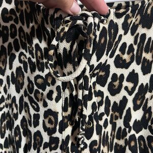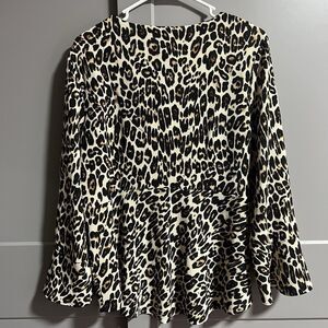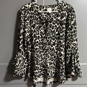 Chico’s Women Lace Up Animal Print Cheetah Flutter 3/4 Sleeve Blouse 2 (US L)