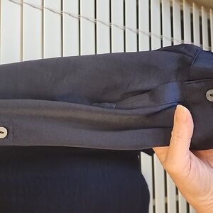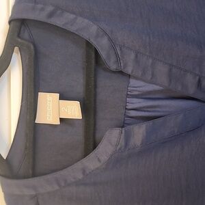 Chico's Women Navy V Neck Flowy Blouse Career Workwear Size 2 /Large