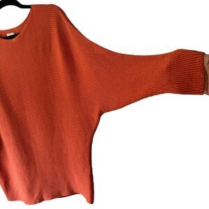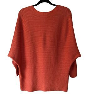 Chico's Women Orange/Coral Metallic Ribbed Banteau 3/4 Sleeve Sweater Sz 2 / Large / 12-14