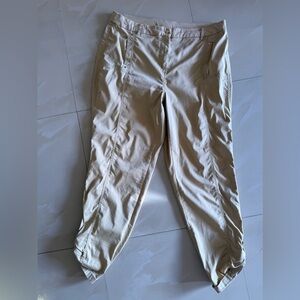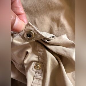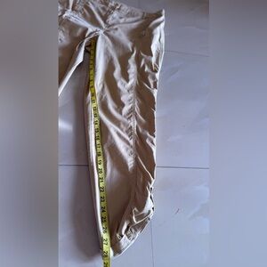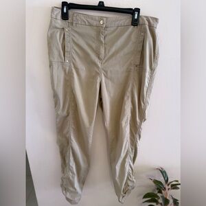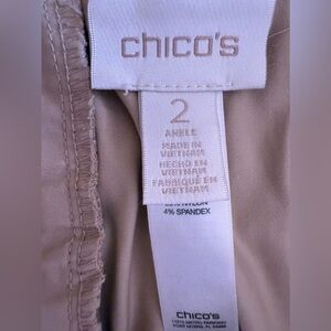 Questions? Leave a comment below! Chico's brand women's capri pants in size 2. These beige pants feature a high rise, button closure, and pockets. Chico's size 2 typically corresponds to a size 12 in other brands.