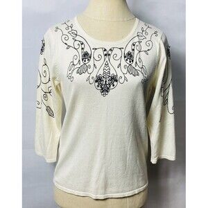 Chico’s Women Petite Knit Embellish Top Size PS Ivory