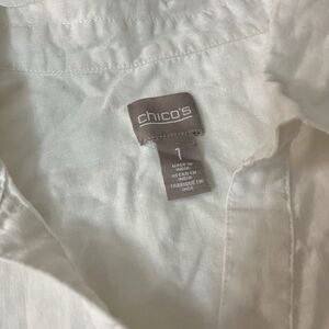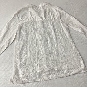 Chicos Women Shirt Size 1/S White Collared Long Sleeve Top Back Lace