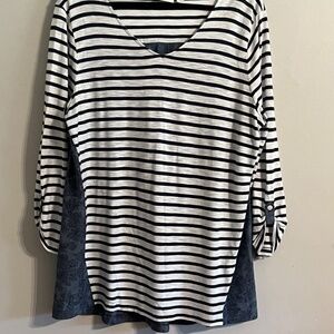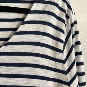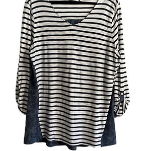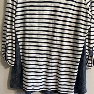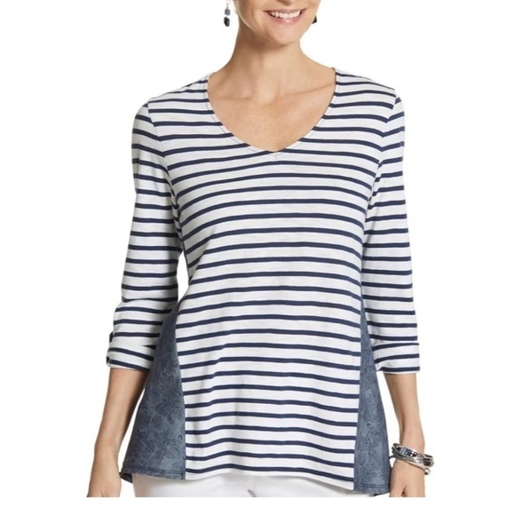 Chicos Women Shirt Size XL Blue Striped Coastal Preppy Mature Old Money Classic