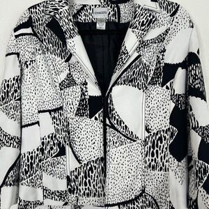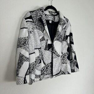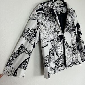Chicos Women Size 1 White & Black Polkadot Patchwork Jacket Coat Blazer NWOT