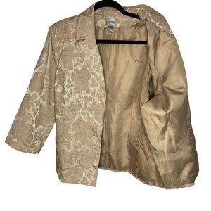 Chicos Women Size 3 XL Floral Rose Shiny Lined Blazer Jacket Hook & Eye Collared