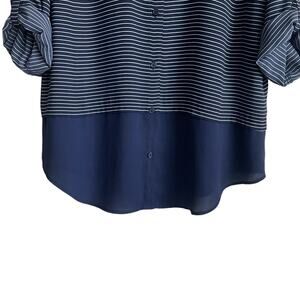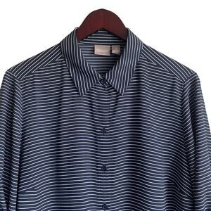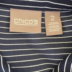 Chico's Women Top L Navy Striped Button Up Casual Workwear Preppy Modern Chic