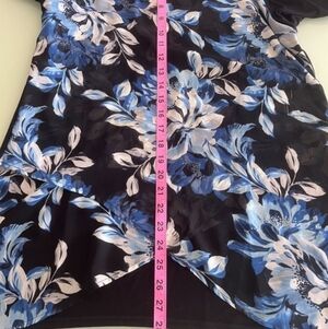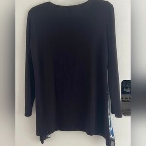 Chicos Women Top Size Mefium Floral Blue/Black Women's Top Long Sleeve Crew Neck