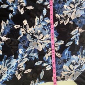 Elegant women's top featuring a striking blue floral pattern on a black background. Perfect for any occasion.