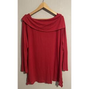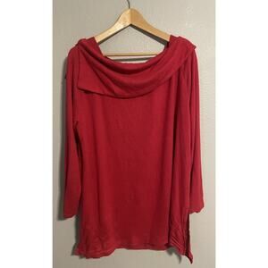 Chicos Women Tunic Size 3 US XL Red Rayon Stretch Soft Cozy Cowl Neck Minimalist