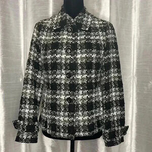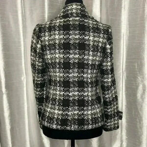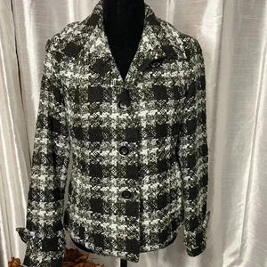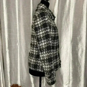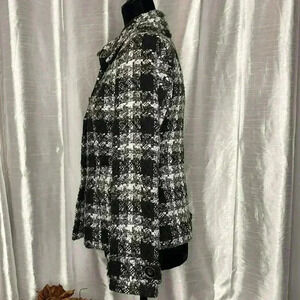 Chico’s Women’s 0 Black White Silver Button Up Tweed Woven Lined Blazer Jacket